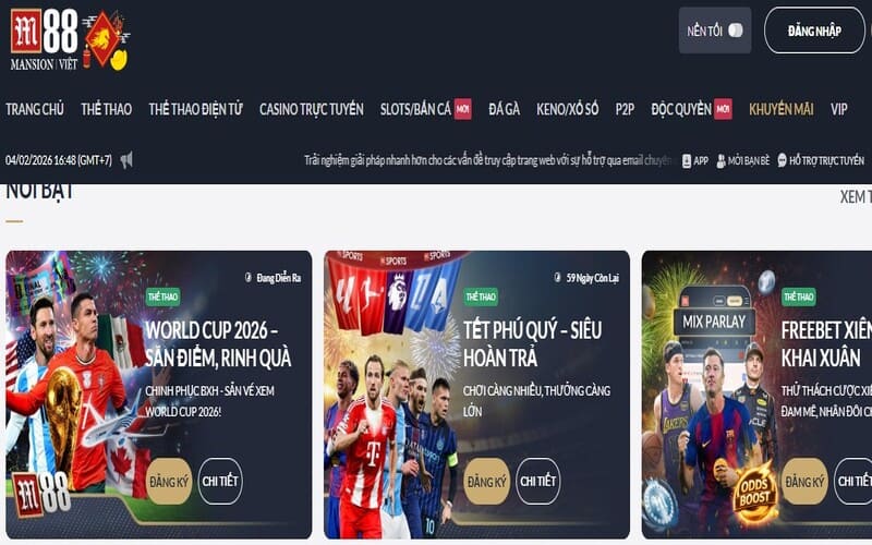 Sau khi truy cập thành công qua link không bị chặn, người chơi sẽ lạc vào một thế giới giải trí khổng lồ với hàng nghìn lựa chọn hấp dẫn. Sảnh thể thao M88 luôn là tâm điểm với tỷ lệ kèo cạnh tranh nhất thị trường, bao quát từ bóng đá, bóng rổ, quần vợt cho đến các bộ môn thể thao điện tử (Esports) đang là xu hướng toàn cầu.